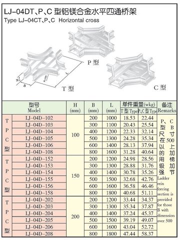 LJ-04DT、P、C型铝镁合金水平四通桥架